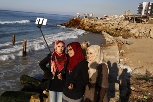 Selfie de fim de ano numa praia da Palestina AFP PHOTO / MOHAMMED ABED