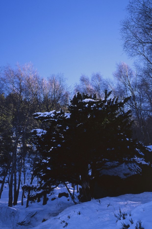 Um dos inúmeros teixos centenários existentes no vale do Zêzere cobre-se de neve durante o Inverno João Nunes da Silva