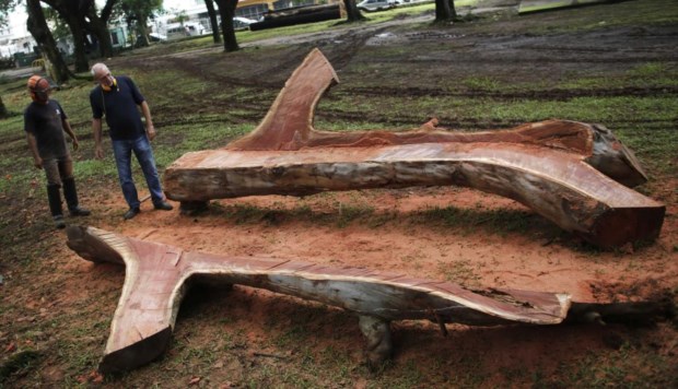 Foram várias as árvores derrubadas pelas tempestades em São Paulo. O que fazer com elas? O gaúcho Hugo França está a transformá-las em peças de mobiliário urbano.