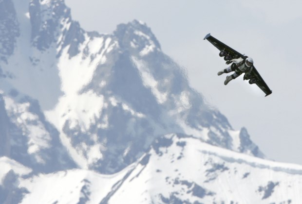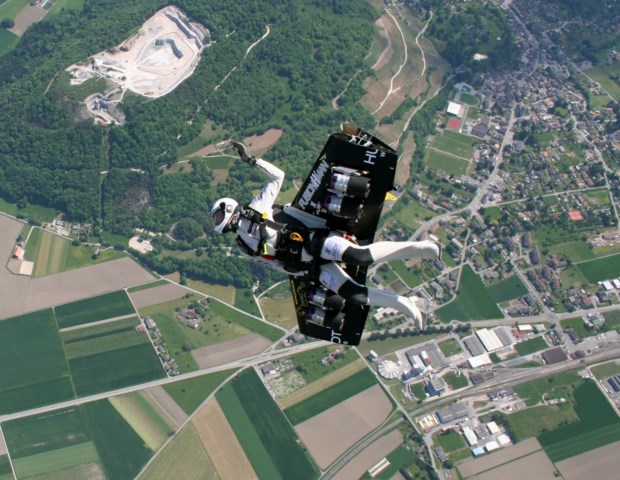 Antigo piloto da força aérea da Suíça, Yves Rossy tem-se dedicados nos últimos anos a uma actividade única: ele é o Jetman e voa pelo mundo com as suas próprias asas (graças a quatro motores que carrega às costas).