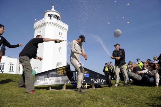 Momento de celebração de mais um voo terminado com êxito. Em Dover, Inglaterra REUTERS/Kieran Doherty