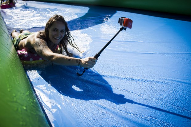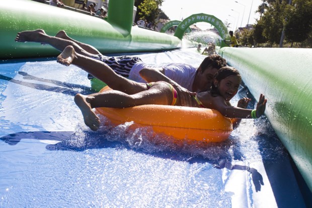 Porto City Water Slide já não é um evento estranho à maioria dos portuenses e a todos os que se dirigiram à Avenida 25 de Abril este fim-de-semana. Foi com fatos de banhos, calções e biquínis de todos os feitios e cores, que o escorrega gigante recebeu os entusiastas da diversão na água. Apetrechados de bóias e chinelos nas mãos, o City Water Slide requeria equipamento adequado para facilitar o deslizamento dos aventureiros. Desde miúdos a graúdos, o dress-code não era obrigatório, mas muitos prepararam-se a rigor para uma das actividades mais refrescantes do Verão no Porto.