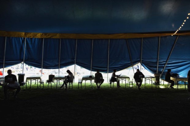 Interior da tenda do festival Paulo Barata
