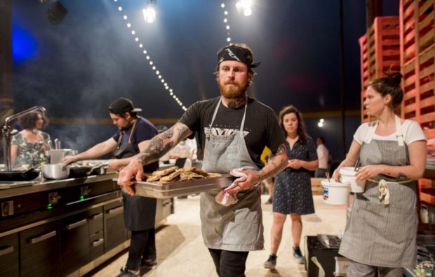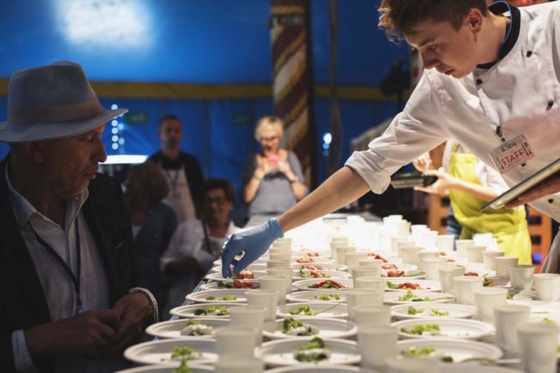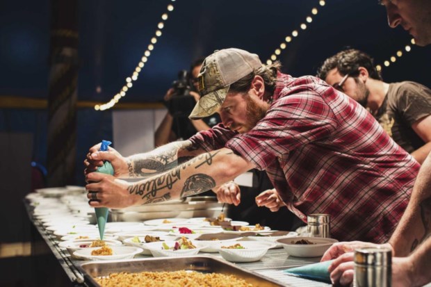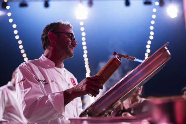Saída do prato do chef Lee Tiernan no palco Paulo Barata