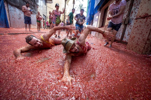 Mais de 22 mil pessoas juntaram-se esta manhã na cidade espanhola de Buñol para a icónica luta de tomates. Com 150 toneladas de frutos e um mar vermelho de gente e de polpa se fez 70 anos de Tomatina. Desde 1945 que se cumpre a tradição: na última quarta-feira de Agosto, a partir das 11h, a praça do Povo em Buñol transforma-se em campo de batalha, com milhares de tomates por munição.