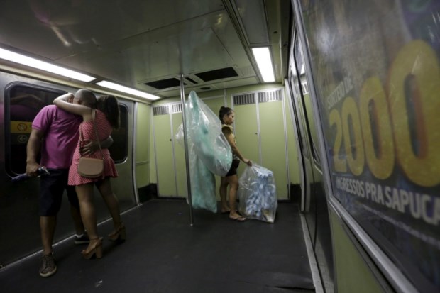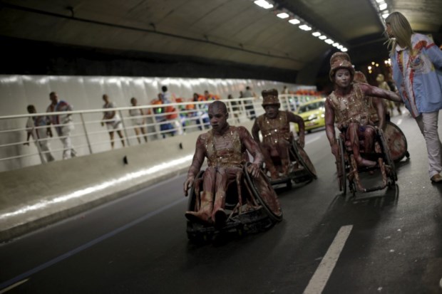 Foliões a caminho do Sambódromo, Rio de Janeiro REUTERS/Lunae Parracho