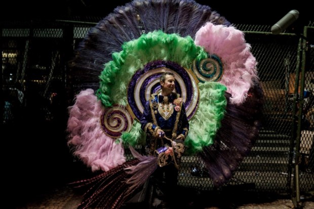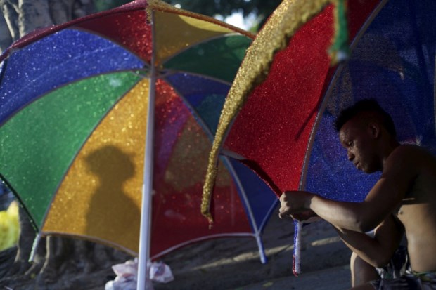 Homem espera para desfilar no Sambódromo, Rio de Janeiro REUTERS/Ricardo Moraes