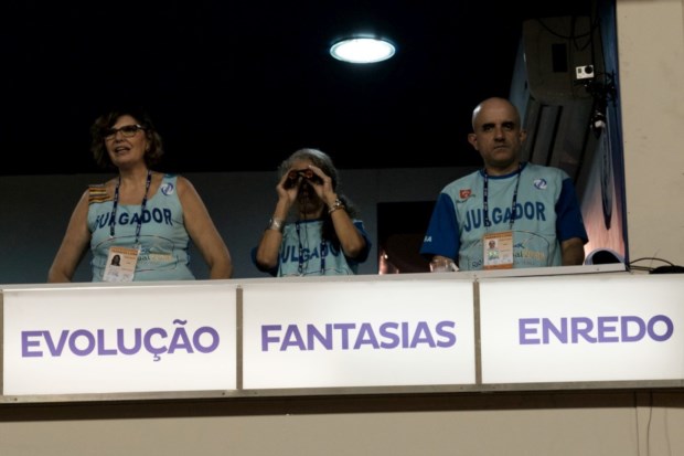 Juízes avaliam o desempenho dos foliôes e das escolas de samba, Rio de Janeiro, Brasil, AFP PHOTO / YASUYOSHI CHIBA