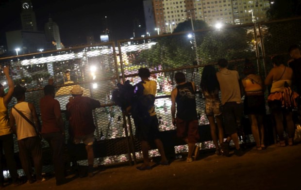 Moradores observam a escola de samba Mangueira de um viaduto durante o desfile de carnaval no Sambódromo, Rio de Janeiro REUTERS/Ricardo Moraes