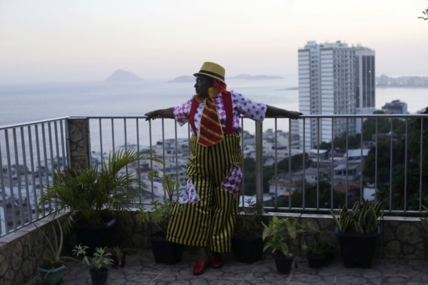 Vania Regina posa para uma fotografia na sua casa na favela Babilonia antes de ir para o desfile de carnaval no Sambódromo com a escola de samba São Clemente, no Rio de Janeiro REUTERS/Lunae Parracho