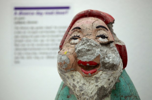 No museu, em Zagreb, um gnomo com duas décadas de Liubliana, Eslovénia. O boneco sofreu ao ser atirado pelos ares por um dos conjugues contra o carro do outro no dia do divórcio... DR/Museum of Broken Relationships