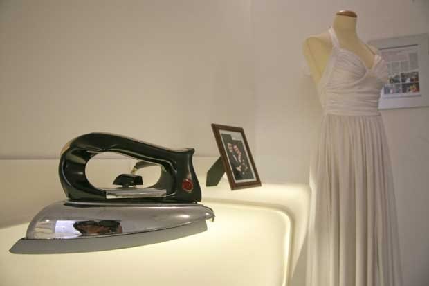 No museu, em Zagreb. O vestido de casamento, 1994/97. "Casámos na Grécia", "Usei este vestido a 20 de Agosto de 1994 em Kavala, Grécia". "Queríamos uma casa feliz com muitas crianças mas a mãe natureza assim não quis". Acabaram por separar-se. Luís Maio