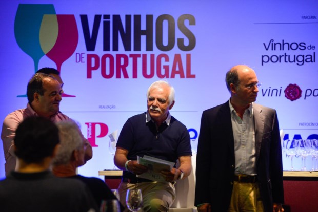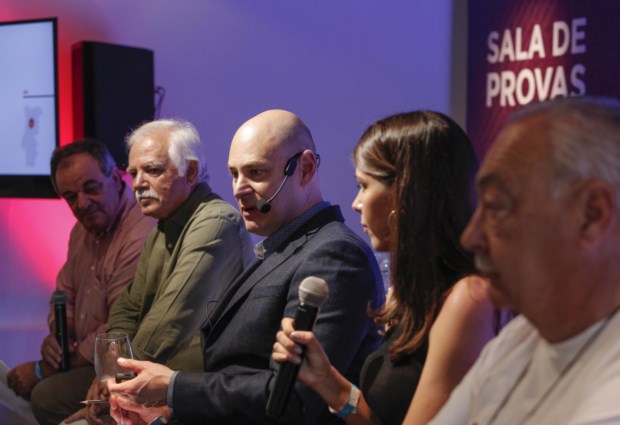 Ao centro, o master of wine Dirceu Vianna Júnior. À sua esquerda, os produtores Domingos Alves de Sousa e Anselmo Mendes; à direita, Lígia Santos e Luís Pato Eduardo Uzal