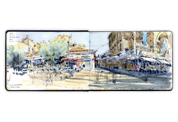 O urban sketcher Hugo Costa continua a repetir os passos do arquitecto Louis Kahn — e encontrou um país sem turistas, sem multidões e sem filas. "Não me senti turista".