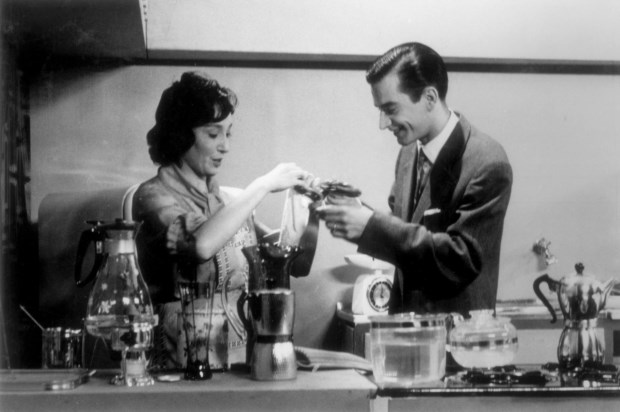 Maria de Lourdes Modesto com Henrique Mendes, seu convidado no programa "Culinária" (1958-1970): aqui o foco eram utensílios para fazer café DR