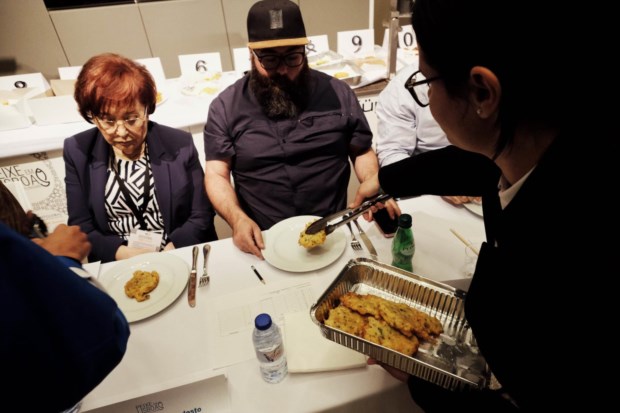 Maria de Lourdes Modesto na 10.ª edição do festival Peixe em Lisboa: um concurso de pataniscas de bacalhau onde foi jurada (aqui com Rodrigo Meneses) Rui Gaudêncio