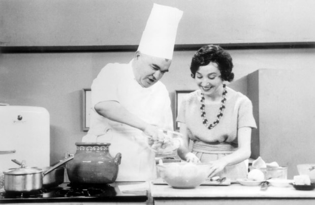 Maria de Lourdes Modesto com o chef João Ribeiro, por muitos considerado o nosso maior cozinheiro do século XX, no programa "Culinária" (1958-1970) dr