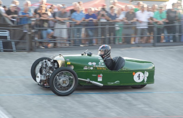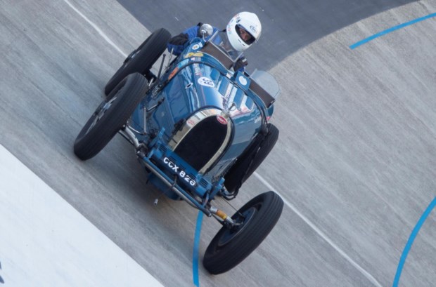 Juerg Koenig conduz um carro de corrida Bugatti Type 37 A, de 1926, durante a corrida Indianapolis em Oerlikon, na pista de ciclismo Offene Rennbahn, no subúrbio de Oerlikon, em Zurique, Suíça Reuters/ARND WIEGMANN