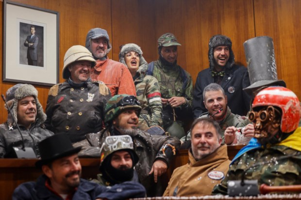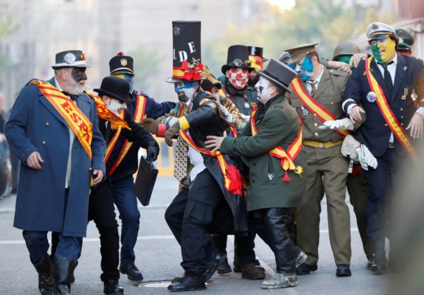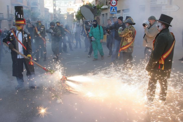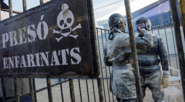 Durante o festival, "Els Enfarinats" encenam um golpe de estado, lutando contra L"Oposicio,Durante o festival, "Els Enfarinats" encenam um golpe de estado, lutando contra L"Oposicio Reuters/EVA MANEZ