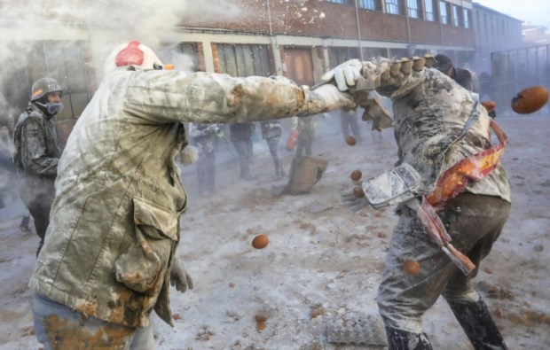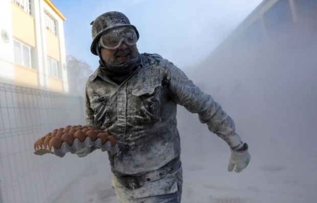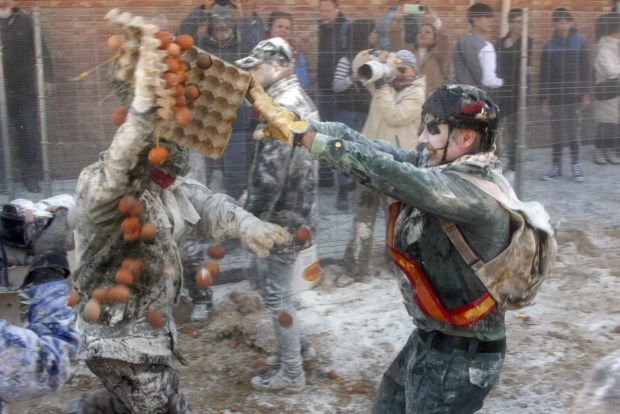 Em Ibi, na província de Alicante, um festival anual celebra o Dia dos Inocentes com lutas de farinha e ovos. Pelas ruas da cidade, voaram esta quarta-feira 10 mil ovos e 600kg de farinha.