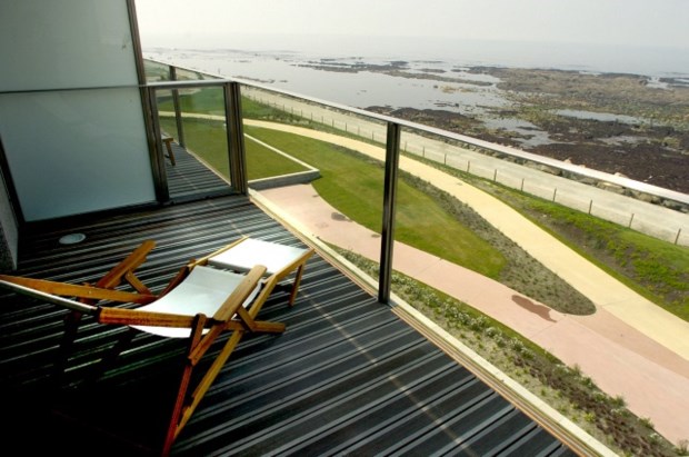 Entre as várias opções de alojamento deste cinco estrelas, o edifício principal do hotel propõe 37 habitações, incluindo duas beach suites duplex, todas com varandas ou terraços privados e vistas para o oceano. Mas 26 daquelas são, literalmente, quartos sobre a praia. Ou melhor: casas rectangulares revestidas de madeira, ladeadas de jardim e mar, que nesta ponta junto a Sagres foge para o verde do Atlântico.