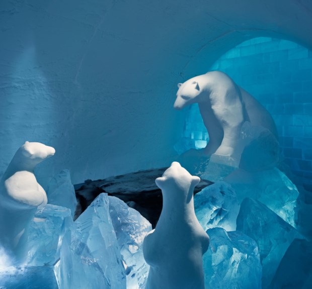 O Icehotel, na Suécia, abriu para nova temporada, mais gelado e artístico que nunca: 40 artistas assinam a obra, sendo possível dormir numa réplica do metro londrino, de um velho cinema ou rodeados de esculturas de ursos.