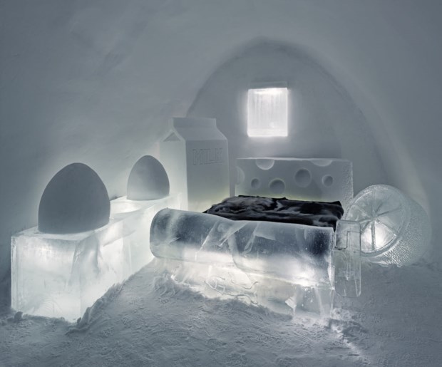 No novo hotel do gelo cada quarto é uma "obra de arte"