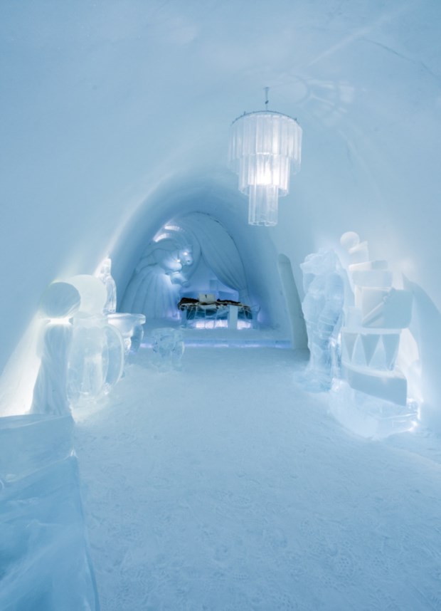Com 65 quartos “gelados” e 72 “quentes”, recebe por ano cerca de 50 mil visitantes de 80 países. As suas instalações de gelo são construídas a partir do gelo natural extraído do rio Torne (que regressa à sua origem a partir de Abril).