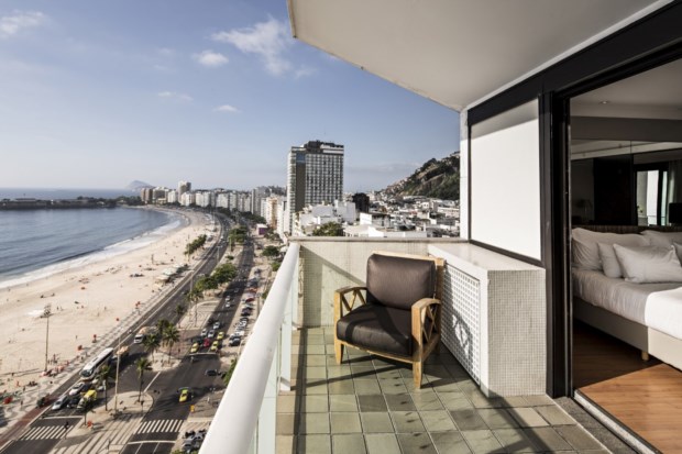 Num primeiro momento, mal reparamos no quarto. É a varanda da suite do Hotel Pestana Rio Atlântica, no Rio de Janeiro, que nos atrai, como se lá fora houvesse um íman. Saímos para o exterior e o calor bate-nos na cara. Aos nossos pés, Copacabana.