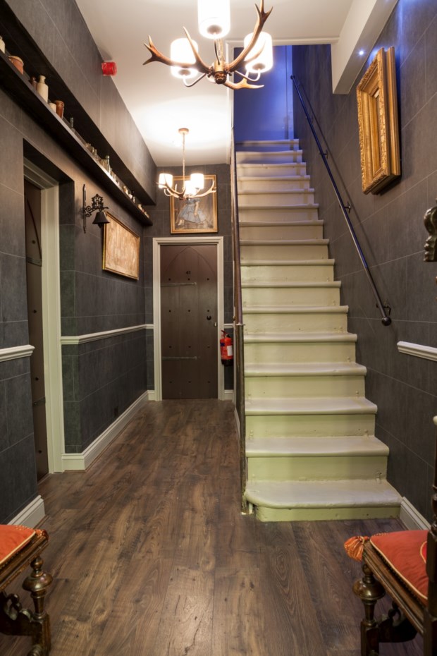 Entre a solidez da madeira e pedra centenárias, há camas de dossel (quatro), espelhos misteriosos e arcas de segredos, obras de alquimia e todos os utensílios que se possam desejar para poções e feitiços, entre frascos e frasquinhos, balanças, varinhas e caldeirões.
