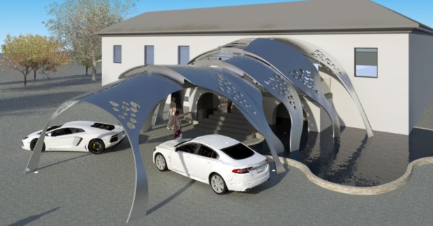 A sobriedade e subtileza do projecto tem pelo menos um rasgo de excentricidade, visível nas imagens divulgadas pelo atelier de arquitectura no seu site: a entrada principal tem como protecção um corpo aéreo metalizado que parece desdobrar-se organicamente.