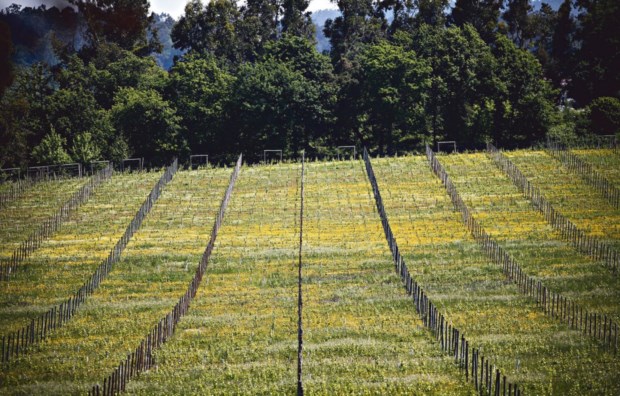 Já há vida nas vinhas. Depois da hibernação, as folhas, de um verde inicial, ainda a desenharem-se e a ganhar corpo, começam o seu crescimento nas videiras. No solo, abundam ervas (vemos trevos, muitos), flores bravias avulsas, que preenchem os espaços em branco entre as linhas de videiras, os mesmos que durante as vindimas serão pisoteados em cadências regulares.