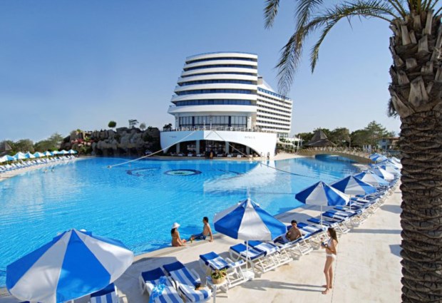 O resort de luxo, um tudo-incluído na região de Antália, na Turquia, junto à longuíssima praia de Lara, tem 550 quartos e pretende fazer reviver alguns dos luxos e nostalgias dos tempos do navio.