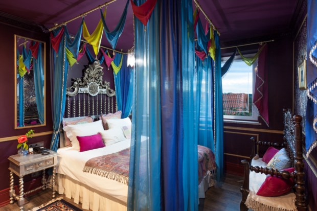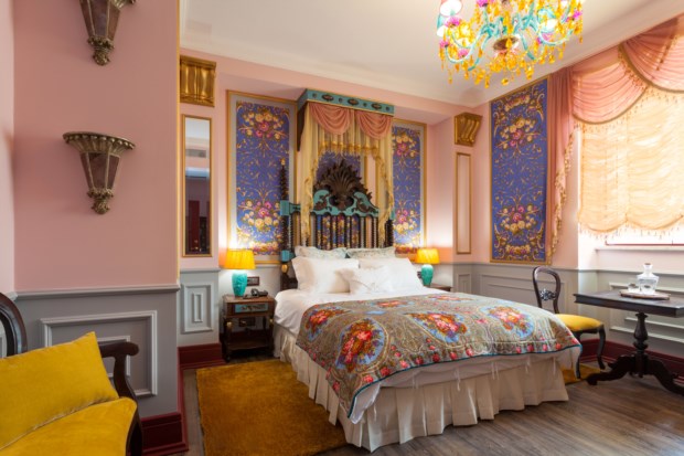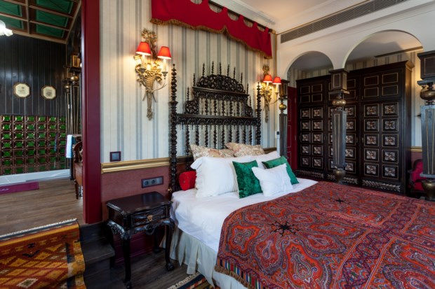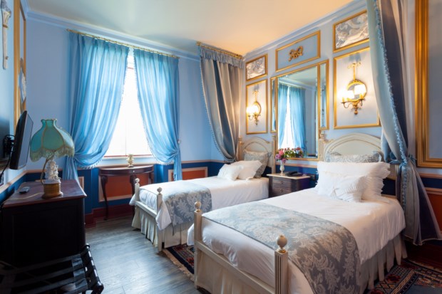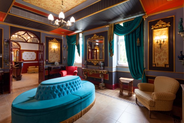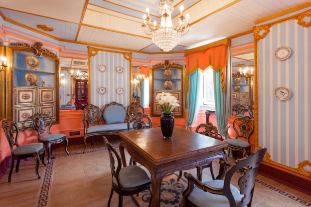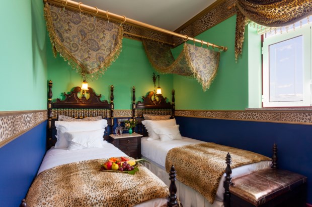 No total, há nove quartos e três suítes. Cada um tem um nome diferente e um tema associado a ditar a decoração. O quarto Porta-Jóias, por exemplo, é todo em tons pastel e recorda o facto de Juliana ter sido considerada “uma das mulheres mais elegantes da sua época”. Já o quarto Chocolate celebra um dos seus doces preferidos, enquanto a suíte Azulejos faz uma homenagem a Portugal e a suíte Oriental retrata o tempo em que Stroganov foi diplomata na Turquia, com tecidos translúcidos a velar a cama de dossel.