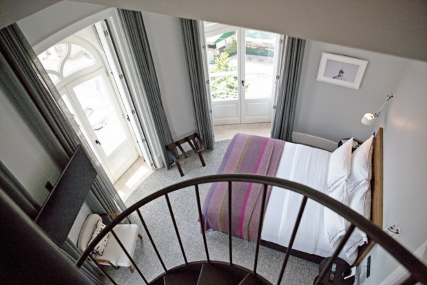 “Neste processo de dois anos rodeámo-nos por muitas pessoas que se interessaram no projecto como nós. Mesmo os empreiteiros, os fornecedores, toda a gente tinha um carinho especial pelo edifício e pela obra”, conta Marta. Além do mais, “quando o dono da obra está lá, quando o tratam por tu, é diferente o convívio”. Essa sinergia manifesta-se hoje em pormenores visíveis, tais como as janelas redondas — que mais parecem a janelas de um navio —, no piso das águas-furtadas. Mais uma vez, figuravam na planta original, mas não tinham sido construídas. Para tapar a luz, arquitectaram, com o carpinteiro, uma engenhoca de portadas de madeira, em forma de meia-lua.