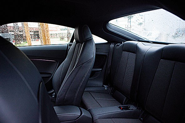 O sentimento de segurança também é potenciado pela posição que o condutor consegue ter aos comandos, sempre com uma excelente visibilidade garantida. O único senão seria o vidro traseiro no caso de haver passageiros no banco de trás. Mas este é demasiado apertado para que essa situação se verifique com frequência. O banco traseiro, sublinhe-se, não serve bem sequer crianças pequenas, sendo útil apenas para uma qualquer aflição. Nenhuma crítica de peso. Afinal não se trata de um quatro lugares, mas de um 2 + 2. Pontos positivos, porém, para os materiais usados nos estofos, quer à frente quer atrás — no banco traseiro até se pode ir apertado, mas bem instalado.