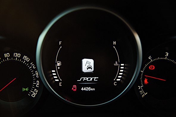 Há três modos de condução, seleccionáveis através de um botão na consola atrás da alavanca de velocidades: Auto, All-Weather e Sport. Durante os cerca de 600km em que conduzimos o Fiat 500X usámos principalmente o primeiro, que origina economia de consumos (uma média de 5,4l/100km num percurso variado, com alguns engarrafamentos). Em algumas ocasiões, quando era necessária uma resposta mais rápida ao pisar do acelerador, empregámos o modo Sport. Com bom tempo, não chegámos a usar o All-Weather, apropriado para condições em que a aderência do carro ao piso é menor. Também ajuda à redução de consumos a existência de um funcional sistema Start & Stop, de paragem e arranque automáticos do motor.