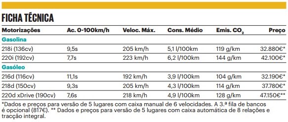 Numa definição algo redutora, poder-se-ia dizer que o Gran Tourer é um Active Tourer que foi “esticado”. Afinal, tem uma frente igual (o rebaixamento do capot permite que seja sempre classe 1 nas portagens), a mesma silhueta dinâmica (com mais 21cm de comprimento e 5cm de altura), similaridades no equipamento e na gama de eficientes e económicos motores (2 a gasolina –  218i com 136cv e 220i com 192cv; 3 diesel – 216d com 116cv, 218d com 150cv e 220d xDrive com 190cv).