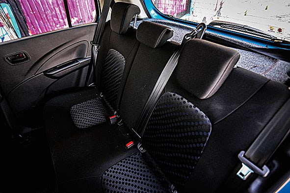 Paralelamente, a sua altura de 1540mm é suficiente para que ninguém se sinta quase a bater com a cabeça no tecto. Note-se que, na versão ensaiada, com o nível de equipamento de topo GLX, o carro está pensado para cinco ocupantes, sendo que três pessoas conseguem encontrar espaço muito por conta do corte a direito do banco. Na versão mais económica, o Celerio, além de vir despido da maioria das comodidades que referimos antes, ainda se apresenta como um carro para apenas quatro, com dois cintos de segurança no banco traseiro. Esta versão, beneficiando da campanha de desconto directo de 1413€ e da oferta de 500€ em caso de financiamento, custa 8985€.