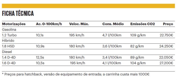 É nos preços que é possível observar a primeira alteração, com a Toyota a colocar o modelo equipado com o propulsor a gasóleo de 1.4 litros e 90cv num patamar que pretende competitivo e a incluir a versão de equipamento de entrada no seu modelo híbrido, equipado com o bloco a gasolina de 1.8 litros apoiado por um motor eléctrico, com uma potência conjunta de 136cv, permitindo colocá-lo no mercado a partir dos 24.250 euros.