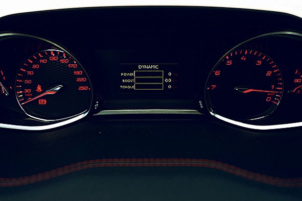 Com um bloco a gasolina 1.6 e-THP de quatro cilindros em linha com uma potência equivalente a 270 cv e um binário máximo de 330 Nm, o Peugeot 308 GTi acelera dos 0 aos 100 km/h em 6,0s, percorrendo os primeiros mil metros nuns impressionantes 25,35 segundos. Valores que andam a par e passo com os seus concorrentes mais directos: o Cupra da Seat, com um bloco 2.0 a gasolina de 280cv, cumpre a aceleração dos 0 aos 100 em 5,9s e os mil metros em 25,4s, enquanto o Golf GTI, menos potente (220cv também num motor de 2.0 litros), faz a aceleração dos 0 aos 100 km/h em 6,5s.