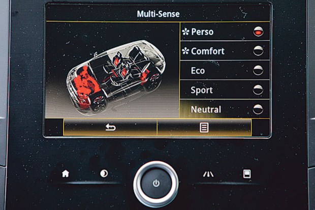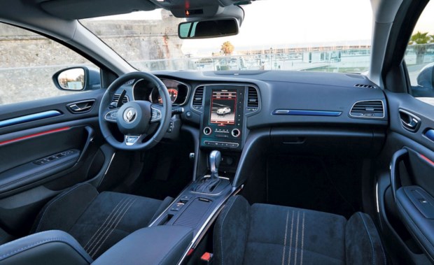 No caso da versão ensaiada, com nível de equipamento GT Line, o Mégane atira-se para um patamar superior quer ao nível da qualidade dos materiais e acabamentos (olhe-se para onde se olhar, não há nada colocado ao acaso) quer ao nível da oferta tecnológica. Exemplos disso são os vidros laterais traseiros sobreescurecidos, ar condicionado automático bizona, a inclusão do sistema Renault Multi-Sense, que permite personalizar a condução ou um head-up display, cuja posição pode ser controlada através do ecrã táctil de 7’’ onde se pode encontrar todo o sistema R-Link 2, com navegação e ligação à Internet.