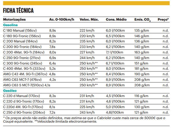 O Mercedes-Benz classe C parece aqueles comércios tradicionais que tinham tudo e o que não tinham inventavam. A família (ou clã?) C inclui berlina de 4 portas, carrinha, coupé, um roadster descapotável de 2 lugares (SLC) e os GLC e GLC Coupé (veículos todo-o-terreno). Para que não falte nada, em Setembro, terá um novo membro: o C Cabriolet, um descapotável de 4 lugares com capota de lona clássica. No design, o classe C Cabrio é uma versão em ponto pequeno do classe S Cabrio lançado recentemente.