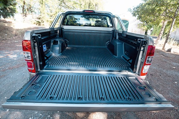 Mas voltemos ao conforto, É que entre estar dentro da Ranger ou de qualquer veículo de quatro ou cinco portas não há grandes diferenças (a não ser talvez as entradas e saídas, dificultadas pela elevada altura ao solo, mas apoiadas pela inclusão de estribos laterais). Todo o painel de instrumentos é novo e tripartido, com a possibilidade de configurar os ecrãs: à esquerda encontramos as informações do computador de bordo ou optar por visionar o conta-rotações. No da direita, exibe-se por exemplo informações de navegação. Ao centro do tablier, um ecrã táctil integra todas as funções de info-entretenimento, acumulando ainda a gestão do ar condicionado (que também pode ser ajustado nos botõezinhos mais abaixo) que se caracteriza por ser bizona.