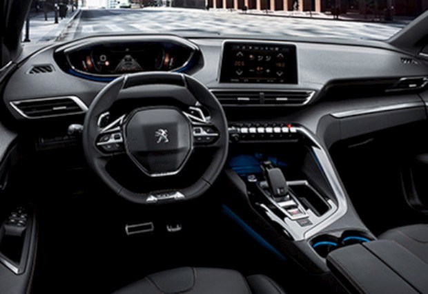 A importância do design volta a ser constatada no interior do habitáculo onde replica a aposta do 3008 com a inclusão da mais recente geração do i-Cockpit que substitui o tradicional painel de instrumentação analógico. Este é agora um ecrã digital de 12,3’’ fácil de observar devido ao tamanho compacto e ao corte a direito do volante. Configurável, o painel é personalizável a partir de cinco modos de apresentação que pode incluir informações de navegação, ajudas à condução, parâmetros do motor, computador de bordo, dados dinâmicos, etc. Já no centro do tablier, um ecrã táctil de 8’’ permite gerir navegação, ar condicionado, entretenimento e telefone, sendo possível a ligação a aparelhos móveis através de MirrorLink, Apple CarPlay e Android Auto. Sob o ecrã surgem seis botões em piano que dão acesso directo às principais funções do sistema.