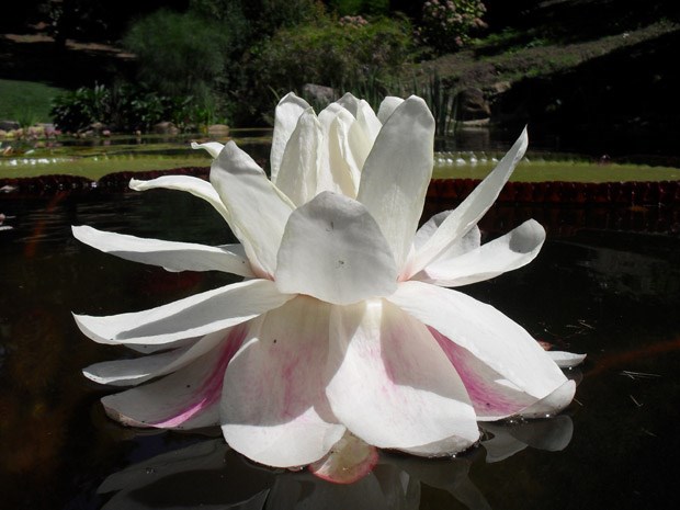 A planta "vive na floresta amazónica (Brasil, Colômbia e Bolívia), crescendo habitualmente em águas quentes (que mantêm mais de 18 graus centígrados durante todo o ano) e cujas folhas atingem mais de 1,5 metros", explica a empresa responsável pelo parque em comunicado. A flor dura apenas 48 horas e apresenta uma coloração branca no primeiro dia e cor-de-rosa no segundo.