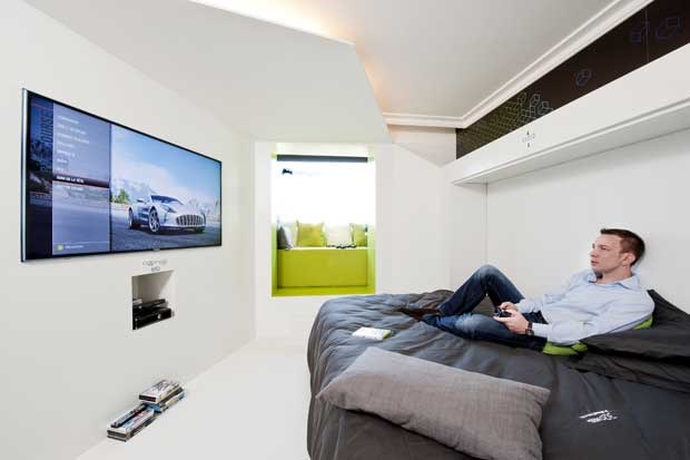 É um quarto-piloto, instalado no Novotel Vaugirard Montparnasse, em Paris, e mostra o que poderá ser o futuro dos quartos desta cadeia hoteleira. No coração (e resto do corpo) deste espaço branco, limpo de decorações extravagantes e em que as linhas direitas imperam, está a Microsoft, com "a integração da consola Xbox 360 e o seu revolucionário sensor Kinect, que usa os gestos do corpo e reconhecimento de voz para controlar jogos e entretenimento". Mas, neste quarto com ar de apartamento clarinho salpicado de apontamentos coloridos, há mais, muito mais.