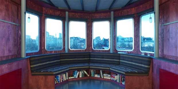 Hotel-de-um-só-quarto, A Room for London foi desenhado pelo atelier de arquitectura David Kohn e pela artista Fiona Banner: além de ter forma de barco, foi colocado no topo do Queen Elizabeth Hall no complexo artístico Southbank Centre. E ali ficará, ao longo de 2012.