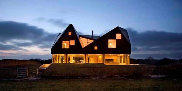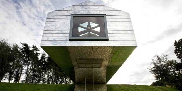 Uma casa-celeiro que parece balançar mas que é uma prova de equilíbrio arquitectónico, com uma parte da construção "dramaticamente no ar". Com desenho dos holandeses MVRDV, já recebeu vários prémios de design. Fica numa reserva natural na costa de Suffolk e é folheada a azulejos prateados, oferecendo grandes janelas panromânicas. Pode albergar oito pessoas - 4 noites custam 884€.