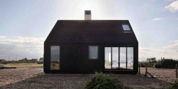 Fica na "mais invulgar e poética das paisagens" inglesas, na praia de seixos de Dungeness, onde muitos artistas foram comprando casas de pescadores para residências artísticas. O projecto dos escoceses NORD é uma impactante casa negra, com acabamentos em telhas pretas e interiores em betão e madeira. Para oito pessoas - 4 noites custam 762€.